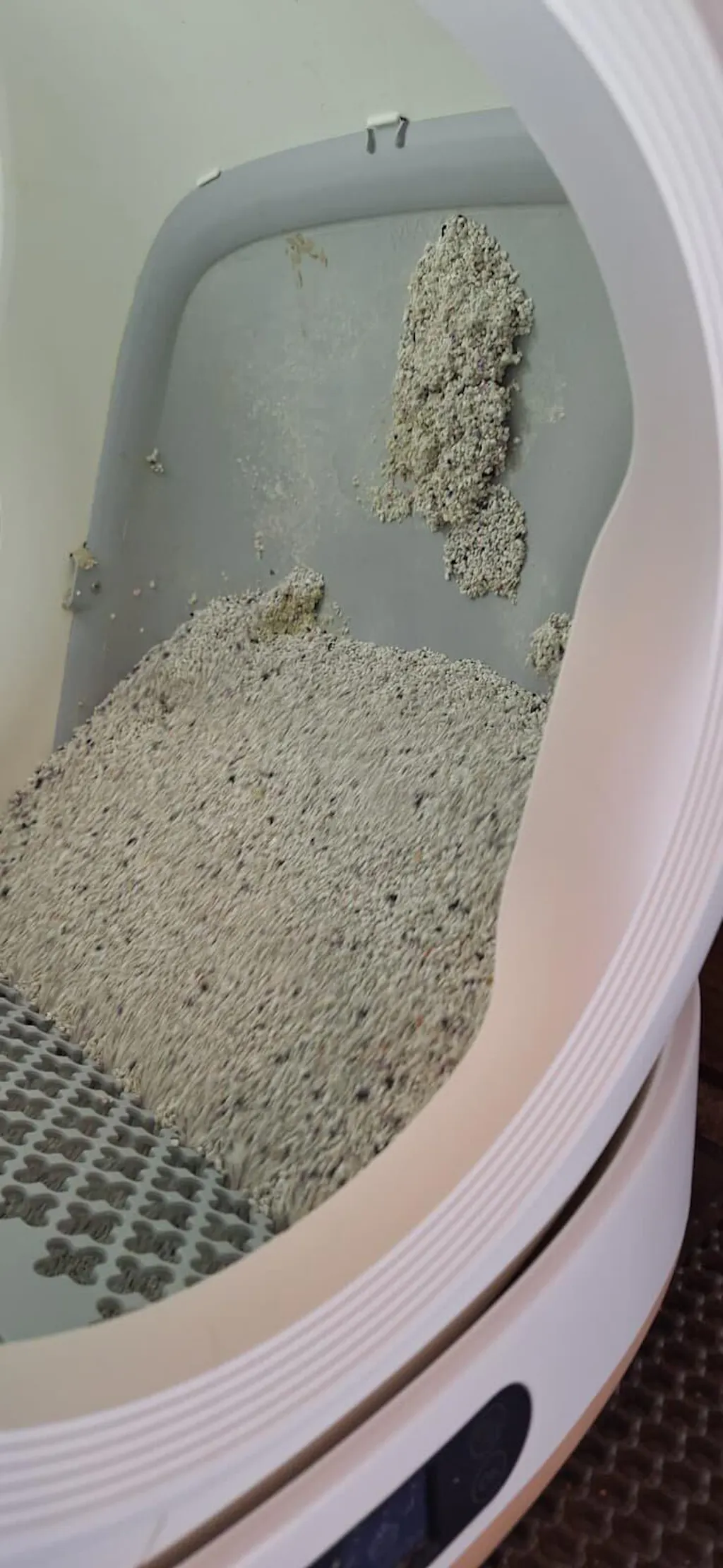 Presul interior – suprafata nu este lucioasa intentionat, deoarece pisica sapa si uneori ramane un strat mai subtire de nisip sub ea. In aceste situatii, este normal sa existe aderenta. De asemenea, este foarte important timpul de autocuratare setat in functie de tipul de nisip. Daca ciclul porneste prea repede, bulgarii nu au timp sa se intareasca suficient si pot deveni mai moi, ceea ce duce la lipire. Putem discuta punctual setarea pe care o folositi si tipul de nisip, pentru a optimiza functionarea. Miscarea butoiului la schimbarea sacului